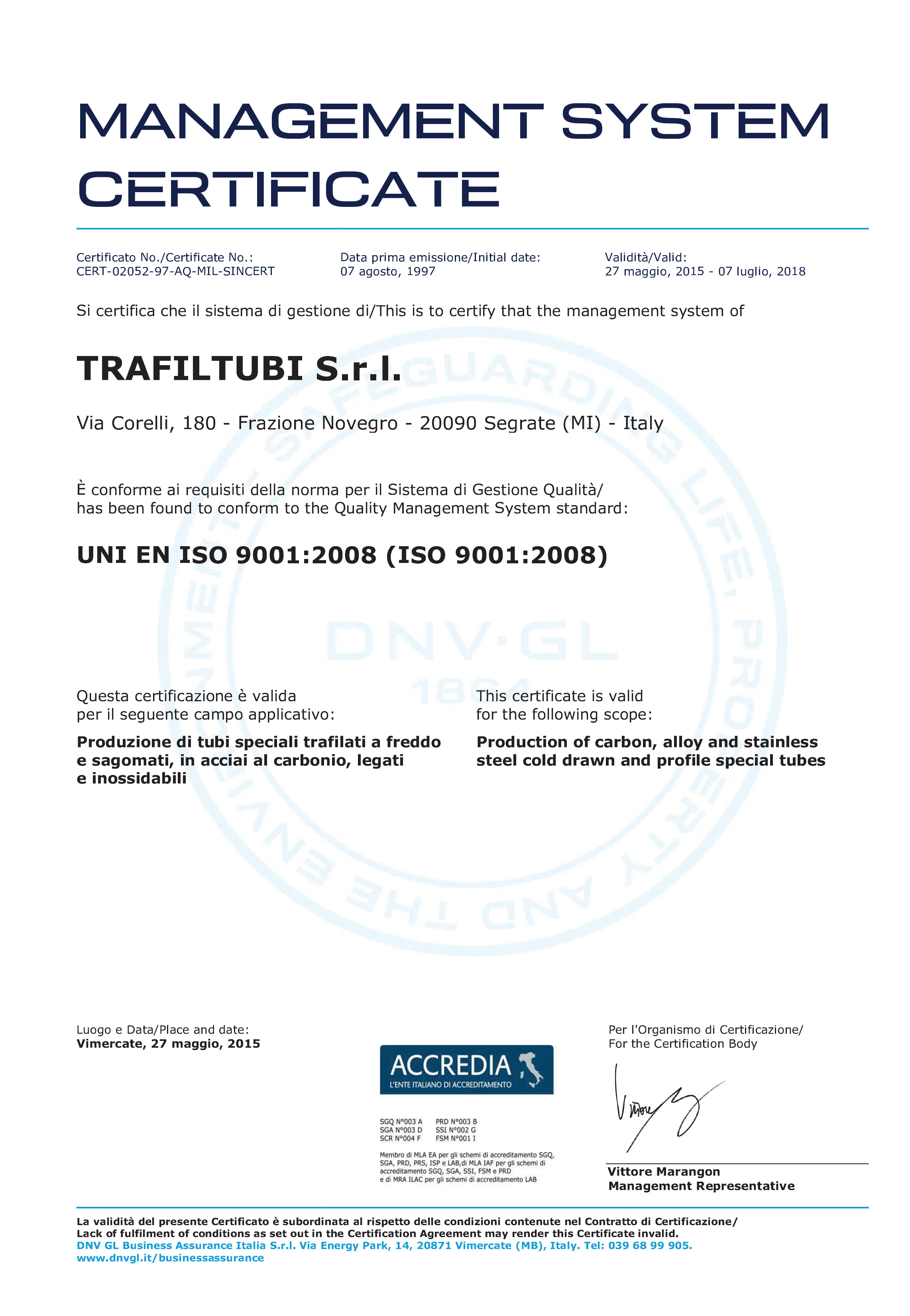 Trafiltubi organization has the aim to offer to all customers the highest quality of product and service. Our Clients are welcome everytime for visit or quality audit.